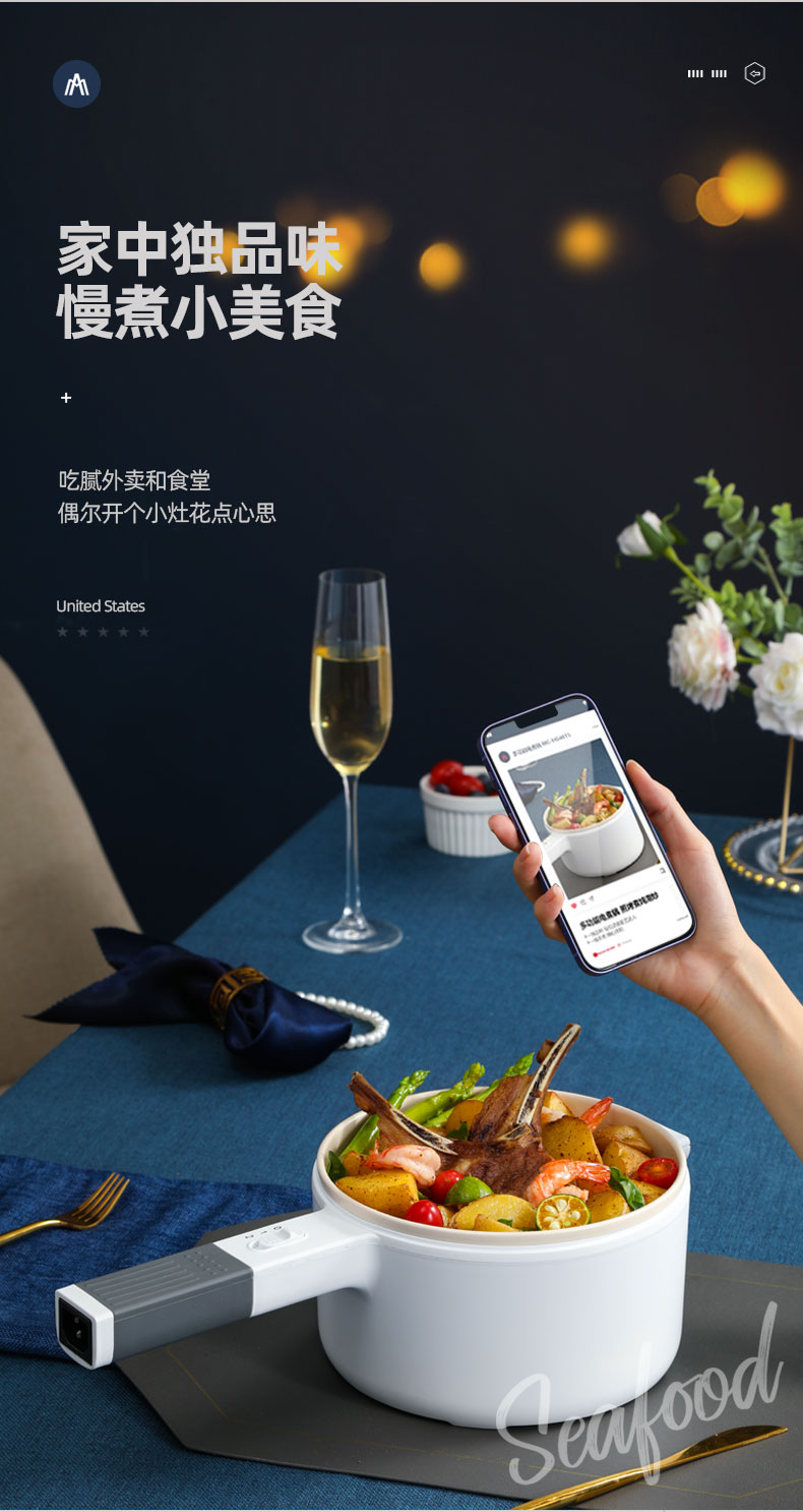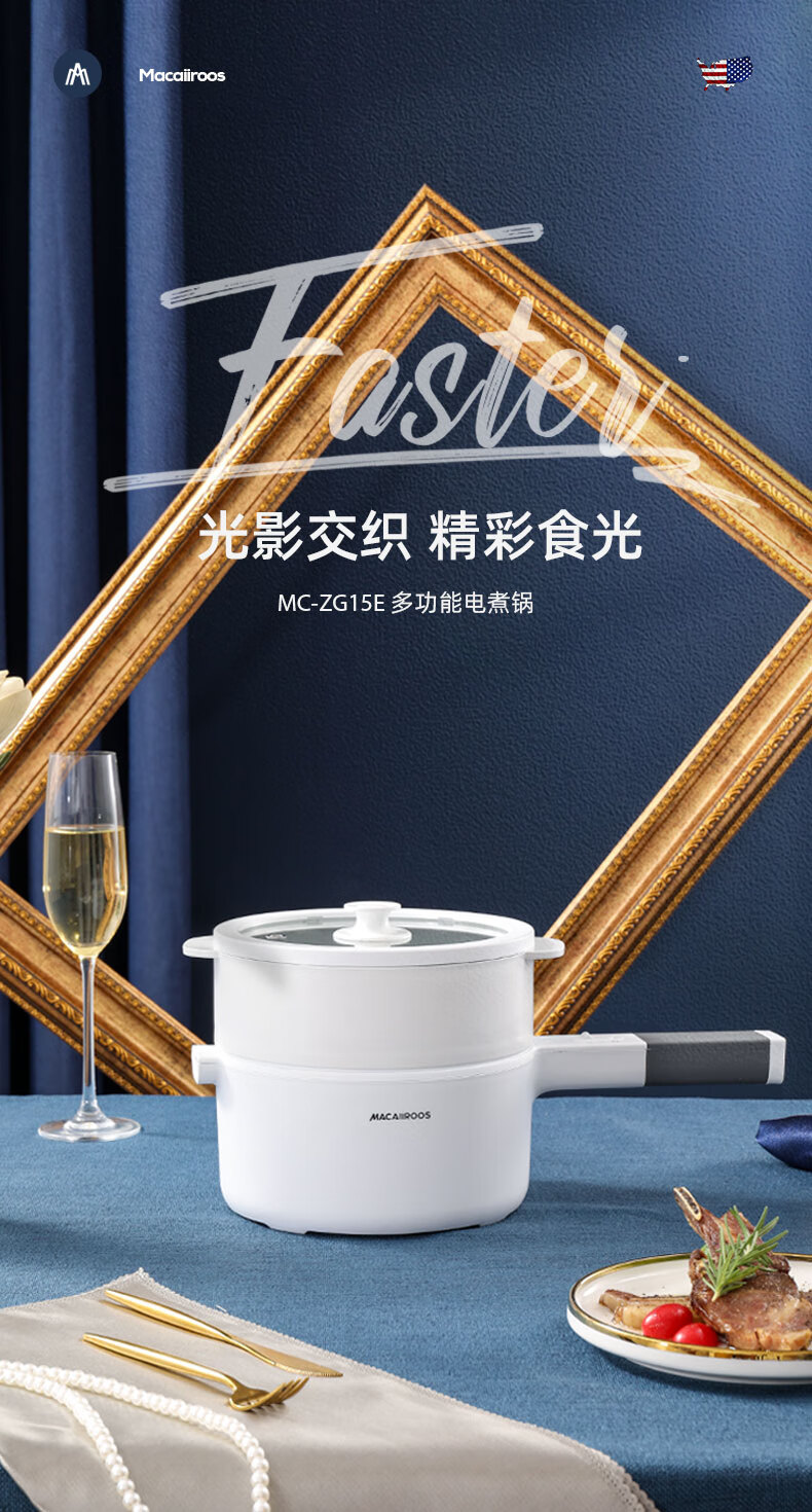 迈卡罗 (MACAIIROOS)电煮锅小电锅多用途锅宿舍学生锅火锅蒸煮一体家用煮面小型迷你锅早餐机