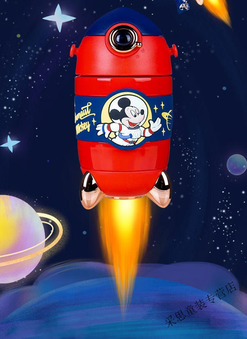 迪士尼(Disney)儿童保温杯带吸管食品级米奇水杯幼儿园宝宝可爱火箭水壶