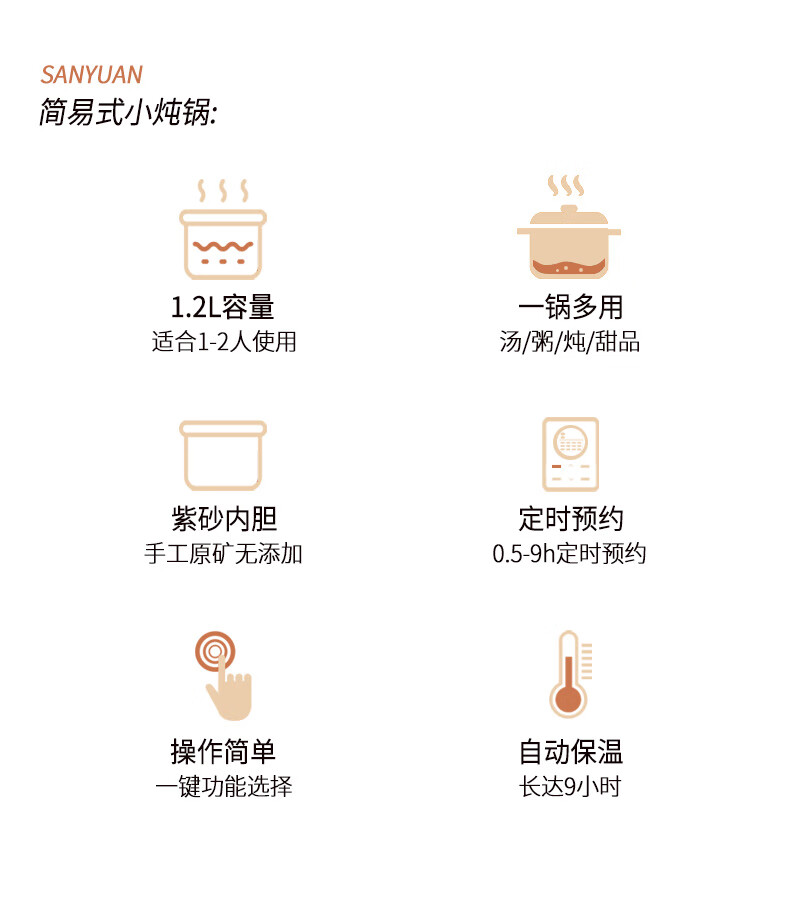 商品名称:三源紫砂电炖锅家用多功能电炖盅迷你电汤锅全自动煲汤煮粥锅